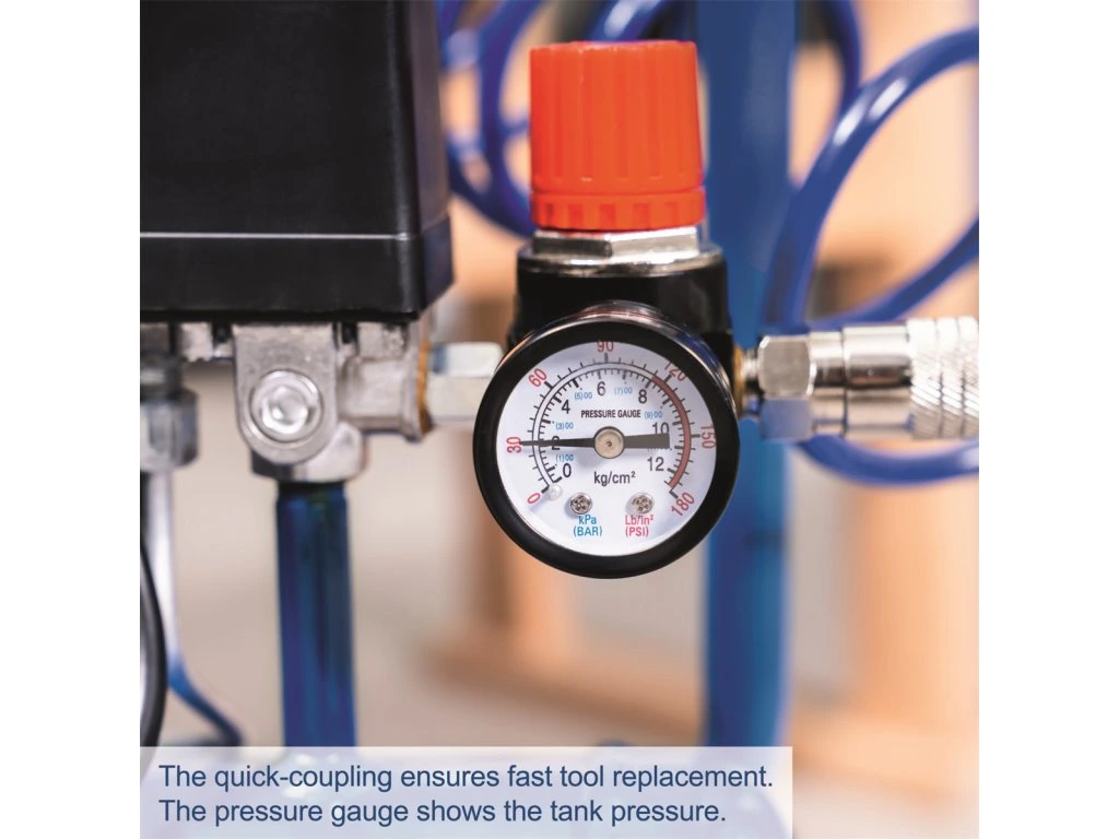 Olejový kompresor Scheppach HC 26 je spolehlivý stroj pro běžné práce v domácí dílně, jako je huštění, ofukování či použití s běžnými pneumatickými nástroji. Díky olejovému mazání pumpy má prodlouženou životnost i při častějším používání. Disponuje 24litrovým vzdušníkem, výkonem 1500 W a součástí balení je i 230 ml kompresorového oleje. Upozornění: Tento model nemá regulaci výstupního pracovního tlaku.